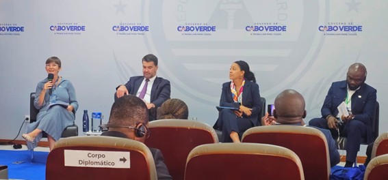 O painel de discussão que reuniu parceiros-chave do ecossistema de financiamento internacional foi particularmente rico e permitiu explorar instrumentos de financiamento climático disponíveis para Cabo Verde, desde os fundos multilaterais, até parcerias bilaterais e mecanismos inovadores como obrigações verdes e azuis, ou troca de dívida por investimento climático.