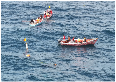 Entre os dias 28 a 29 de outubro foram testemunhados um dos principais resultados a serem alcançados, o lançamento de quatro Dispositivos de Concentração de Peixes (DCPs) ao longo da costa dos Mosteiros. Estas estruturas flutuantes, instaladas entre 0,4 e 0,5 milhas náuticas da costa, aumentam a produtividade da pesca artesanal, reduzem o consumo de combustível e diminuem a pressão sobre os habitats marinhos. Os DCPs foram construídos e instalados com a participação direta dos pescadores, com apoio técnico do IMar e da Associação Projeto Vitó, que também coordena os “Guardiões do Mar”, iniciativa dedicada à vigilância e à monitorização dos ecossistemas marinhos.