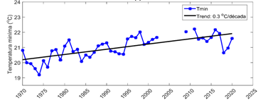 This is largely because at night, when we no longer have the solar radiation factor, the heat that is emitted by the earth tends to escape through the atmosphere, and this is where greenhouse gases come in, trapping this heat or energy here on Earth, causing local minimum temperatures to rise, even exceeding the increase in the average temperature.